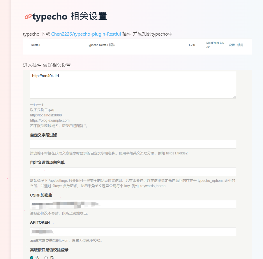 typecho 下载 Chen2226/typecho-plugin-Restful 插件 并添加到typecho中